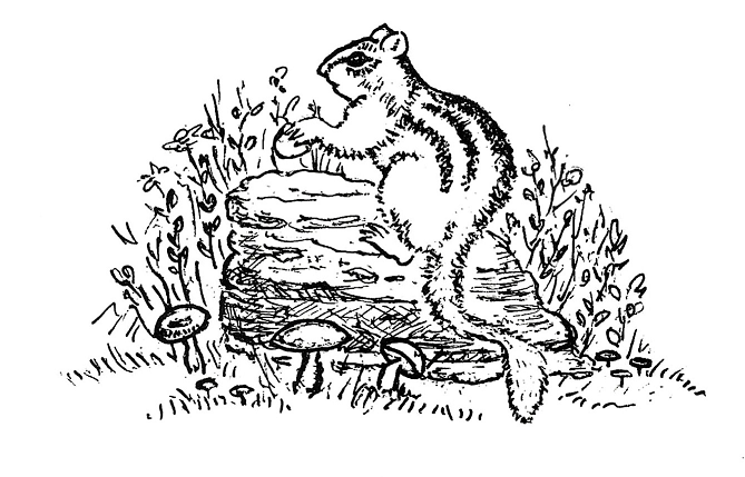 Small animals abound. Little brown, striped chimpunks, beautiful white-tailed grey squirrels and cotton-tail rabbits play among the needle-laden tree branches and forest carpet. People who do not under stand the nature of wild animals have been bitten trying to catch or handle them. For some residents, how ever, patience has rewarded them in having the small beasties take bits of food from their hands.